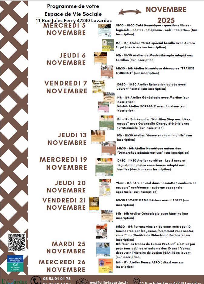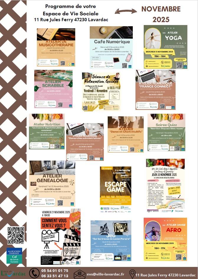 Programme de votre Espace Vie Sociale à Lavardac - Novembre 2025